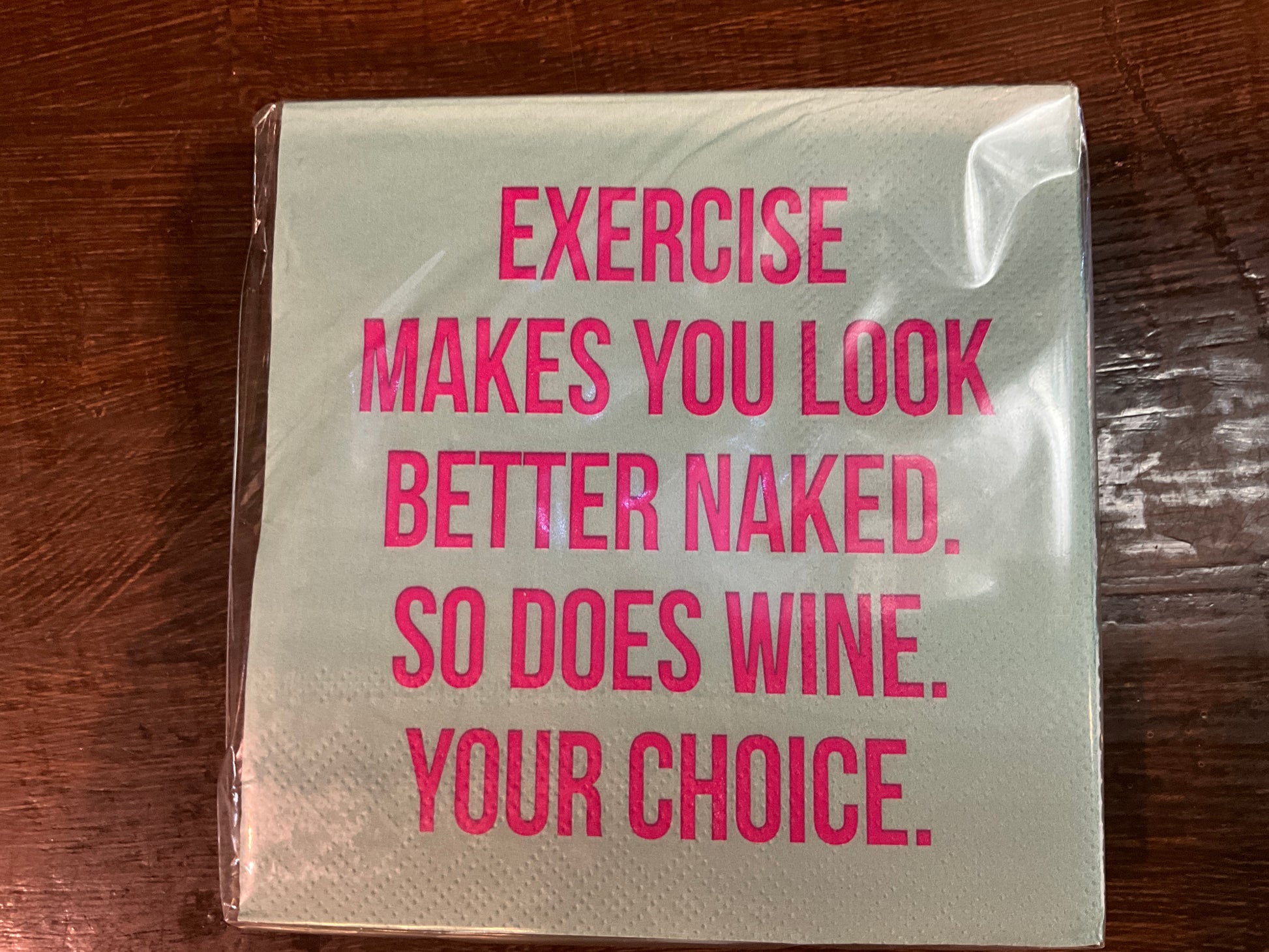 Beverage Napkins - Exercise makes you look better naked. So does wine. Your choice.