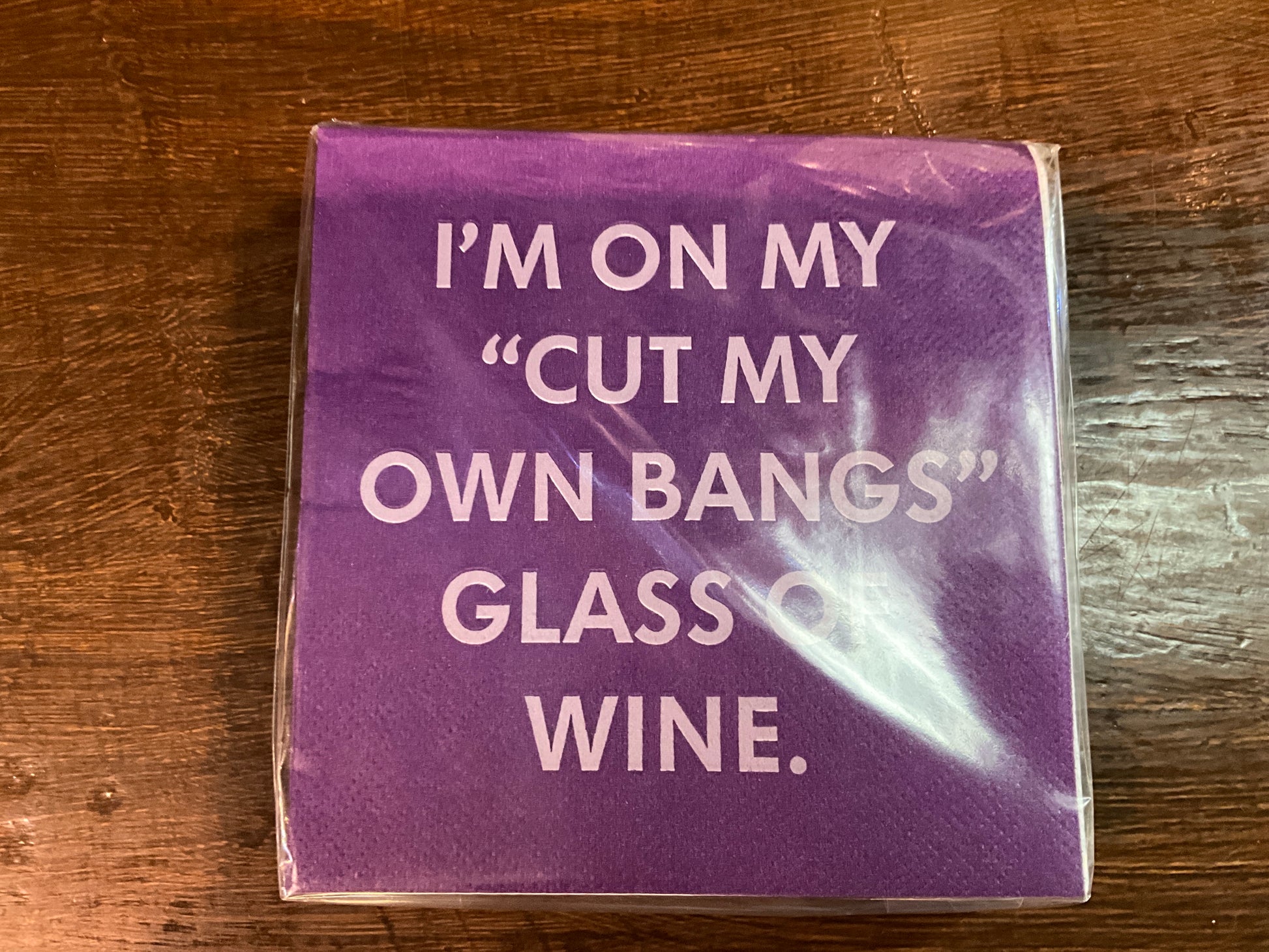 Beverage napkins - I’m on my “cut my own bangs” glass of wine (25 beverage napkins; 3 ply-5” x 5”