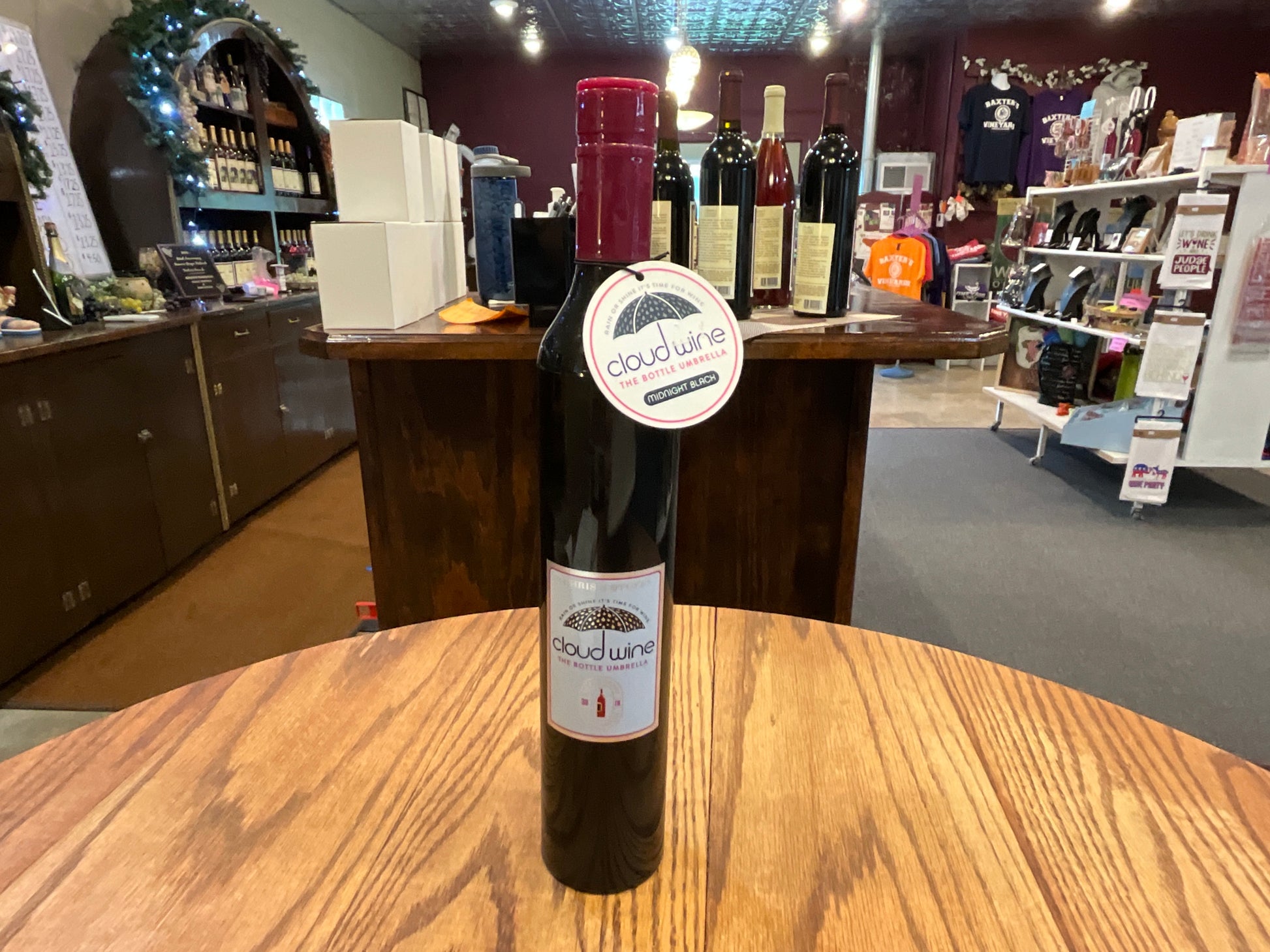 Midnight Black color with gray rain drops design. 38" Umbrella with wine bottle shaped plastic storage case. Made of 100% Polyester fabric with a steel frame construction. Storage Casing - 11.75"...