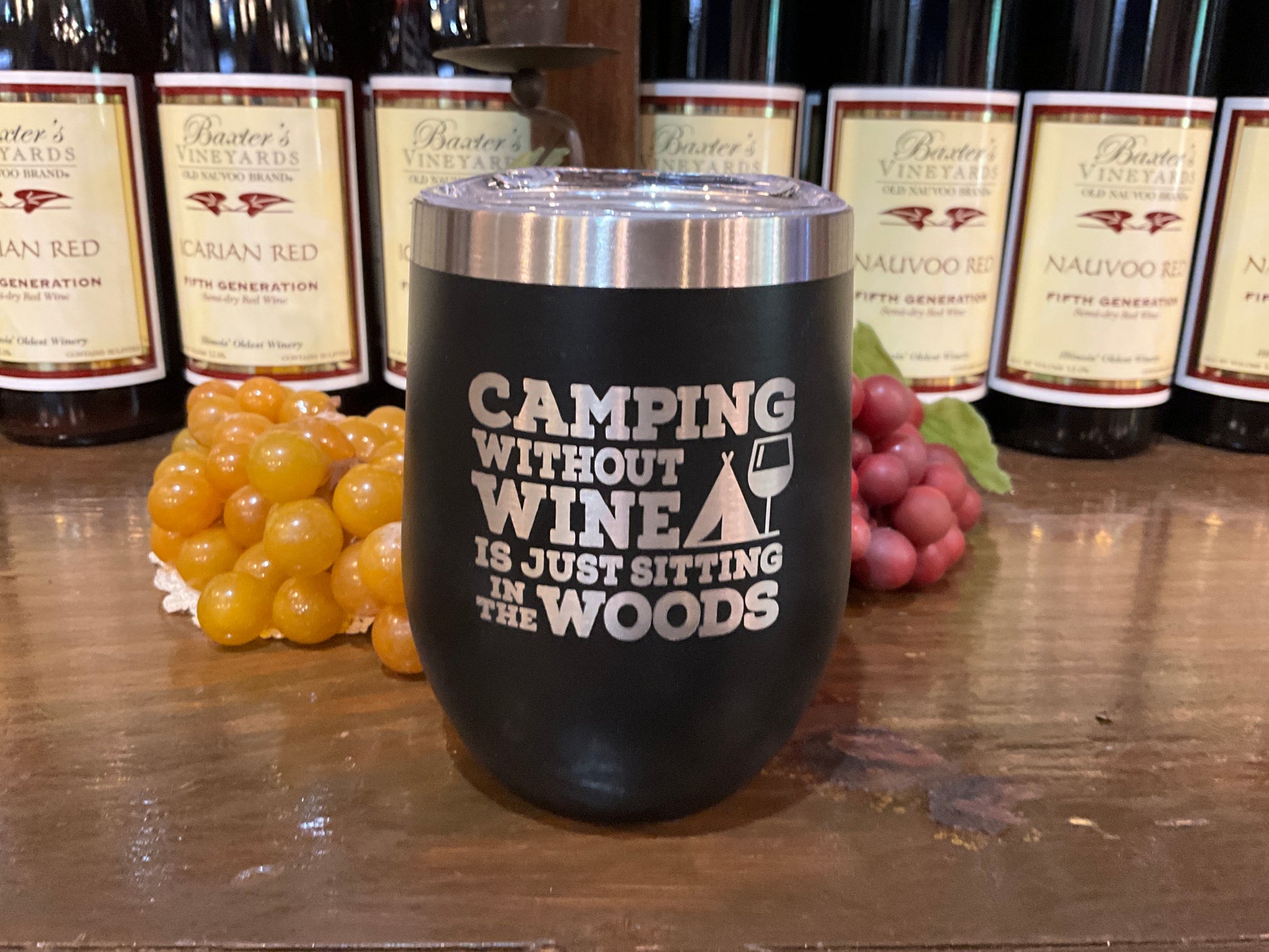 Black Insulated Tumbler (Camping Without Wine)
