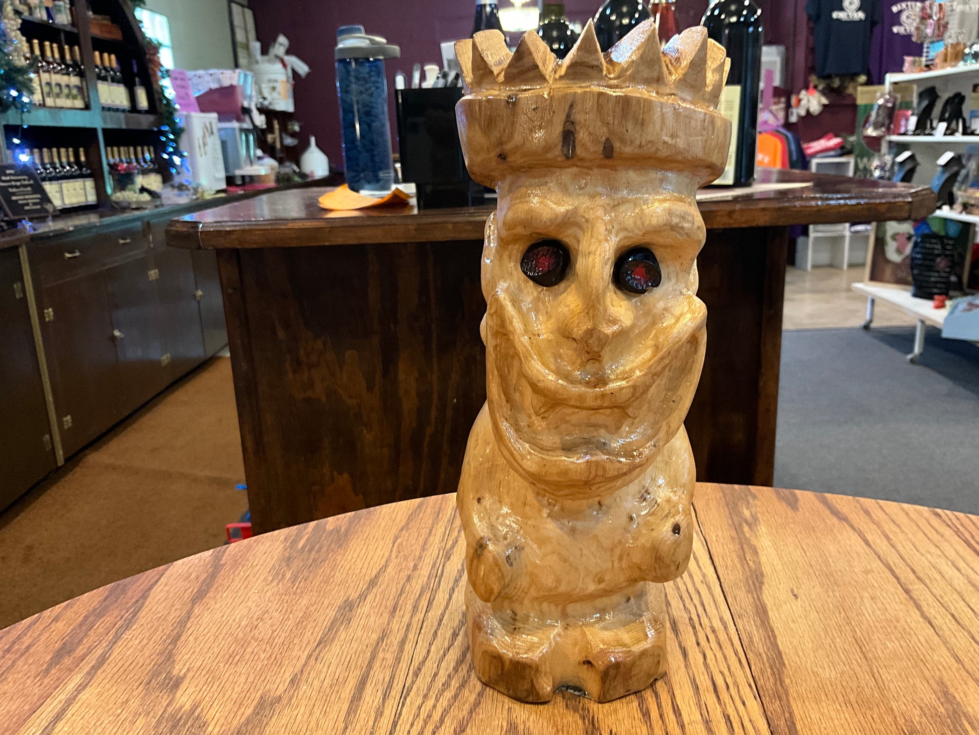 Carved of solid wood with a semi-gloss varnish. Do not linger in his gaze … he sees more than he should.