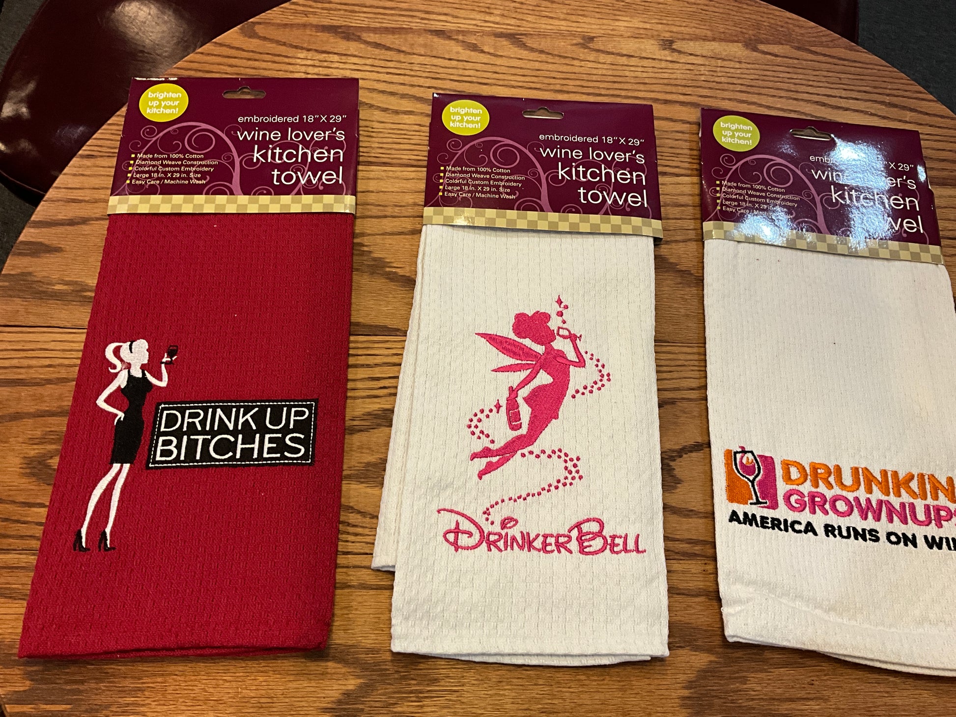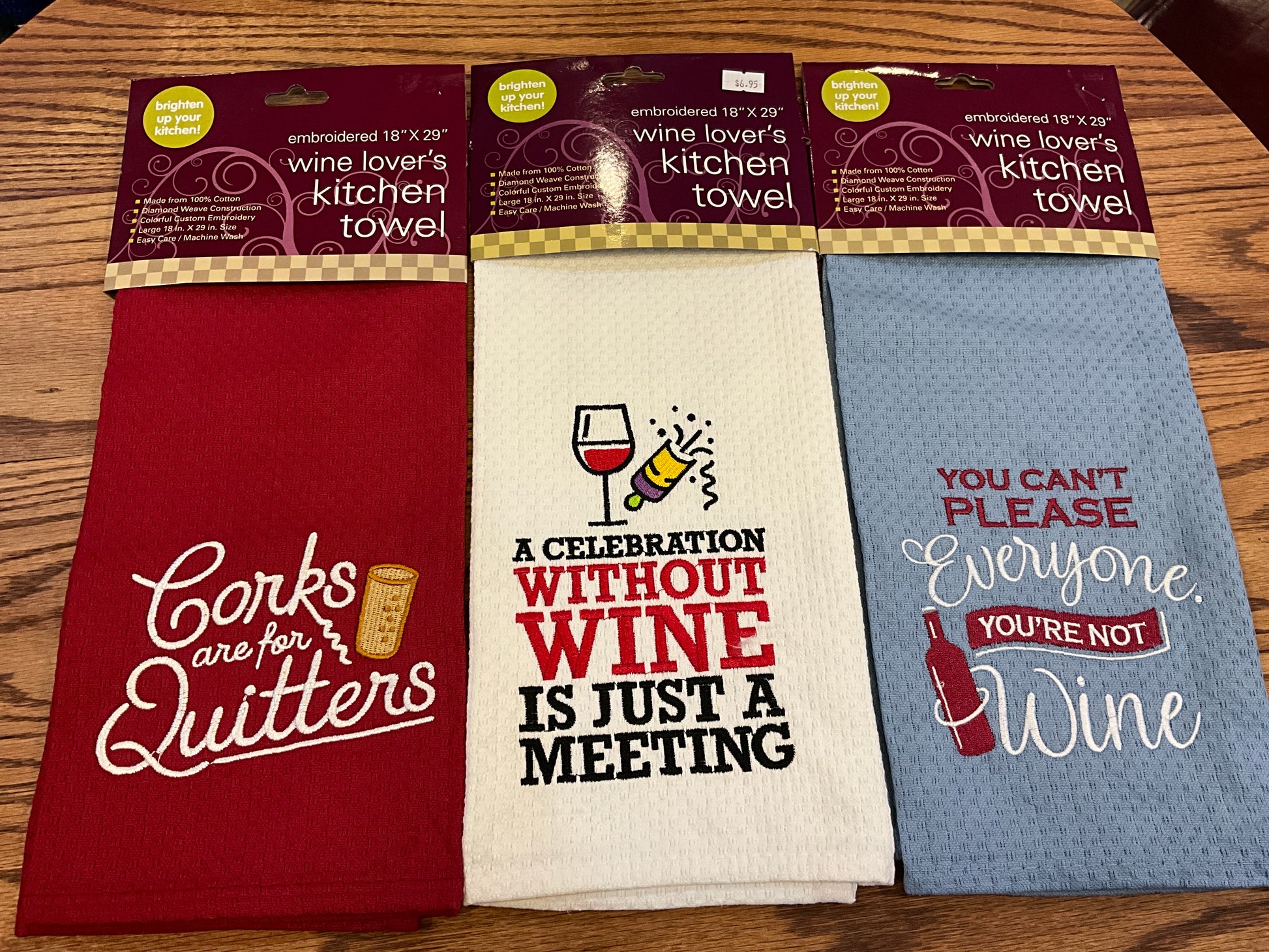 Wine Lover’s Kitchen Towel is made from 100% cotton and has a diamond weave construction. Brighten your kitchen with colorful custom embroidery. It is 18 in x 29 in in size, easy to care, and machine washable.