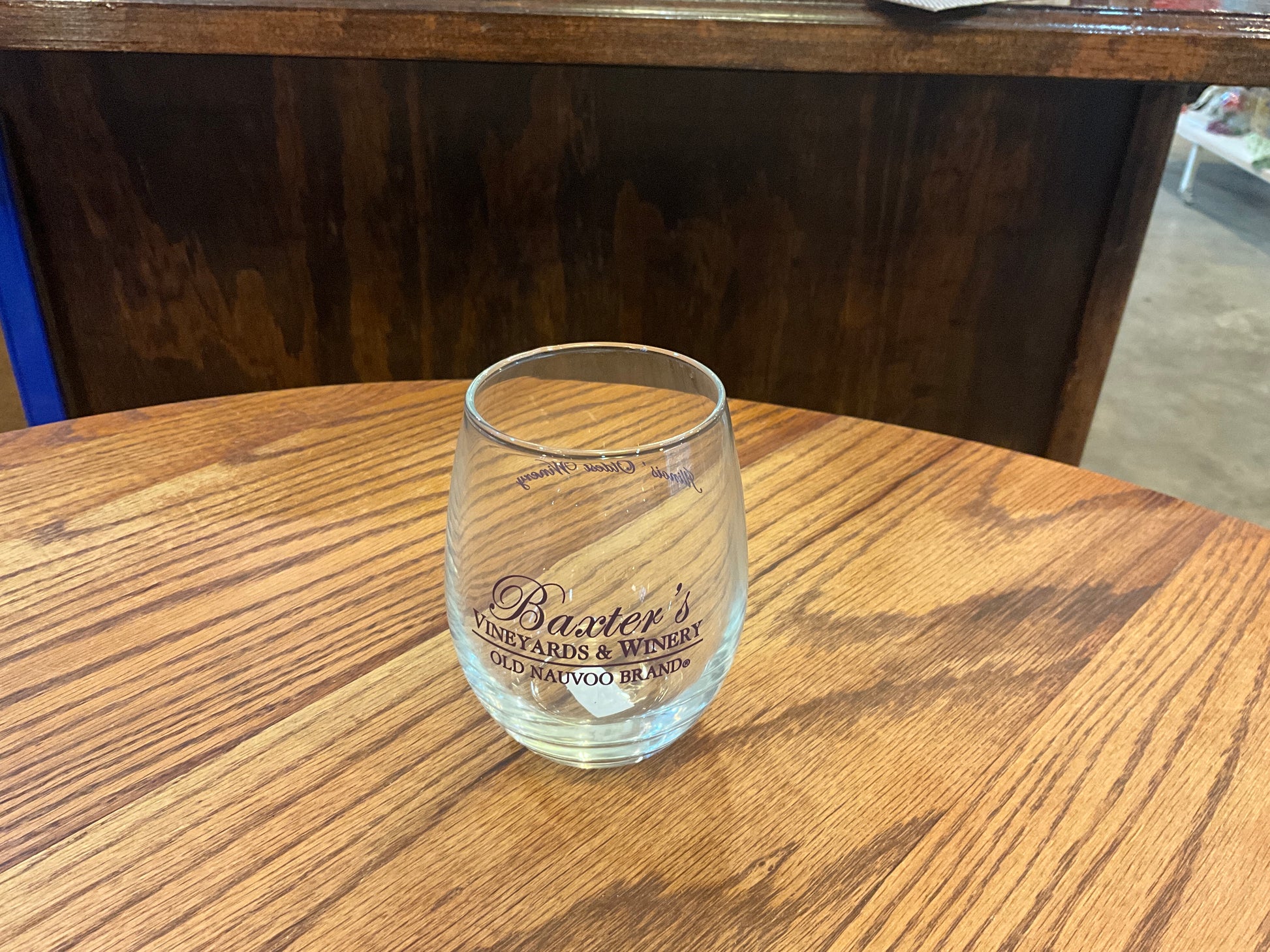 Baxter’s Vineyards & Winery Stemless Wine Glass.