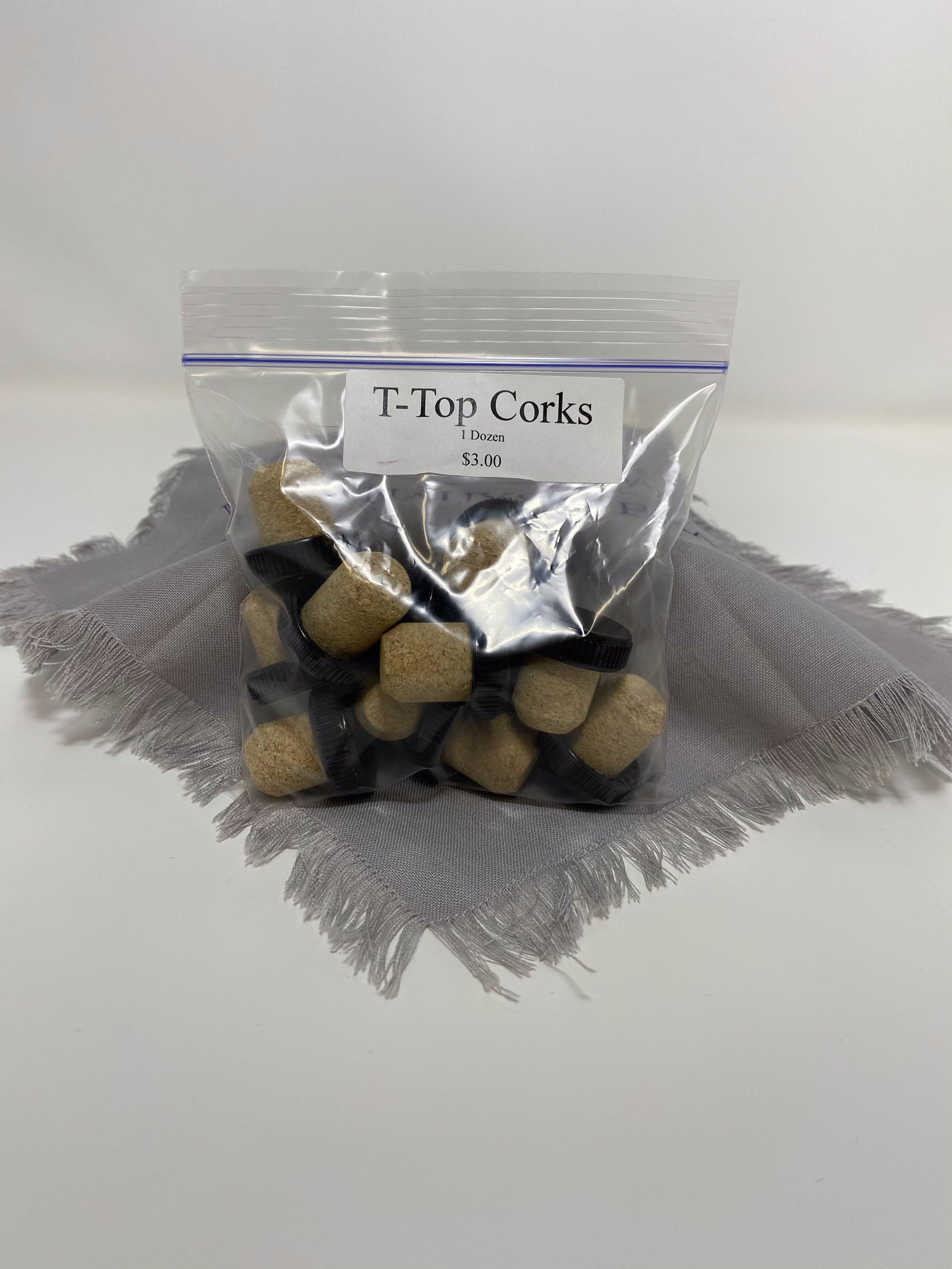 T-Top corks are used in place of Regular cork once the bottle has been opened. They are reusable and fit standard wine bottle opening. Sold by the dozen.