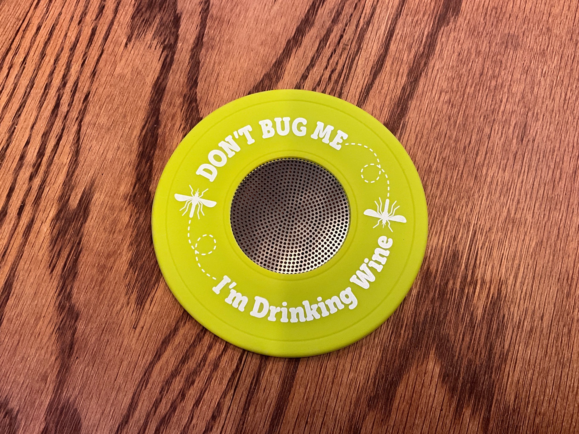 Ventilated Silicone Wine Glass Cover protects your drink from bugs, vented to allow wine to breathe, and also serves as a drink marker. Select from 4 different colors.