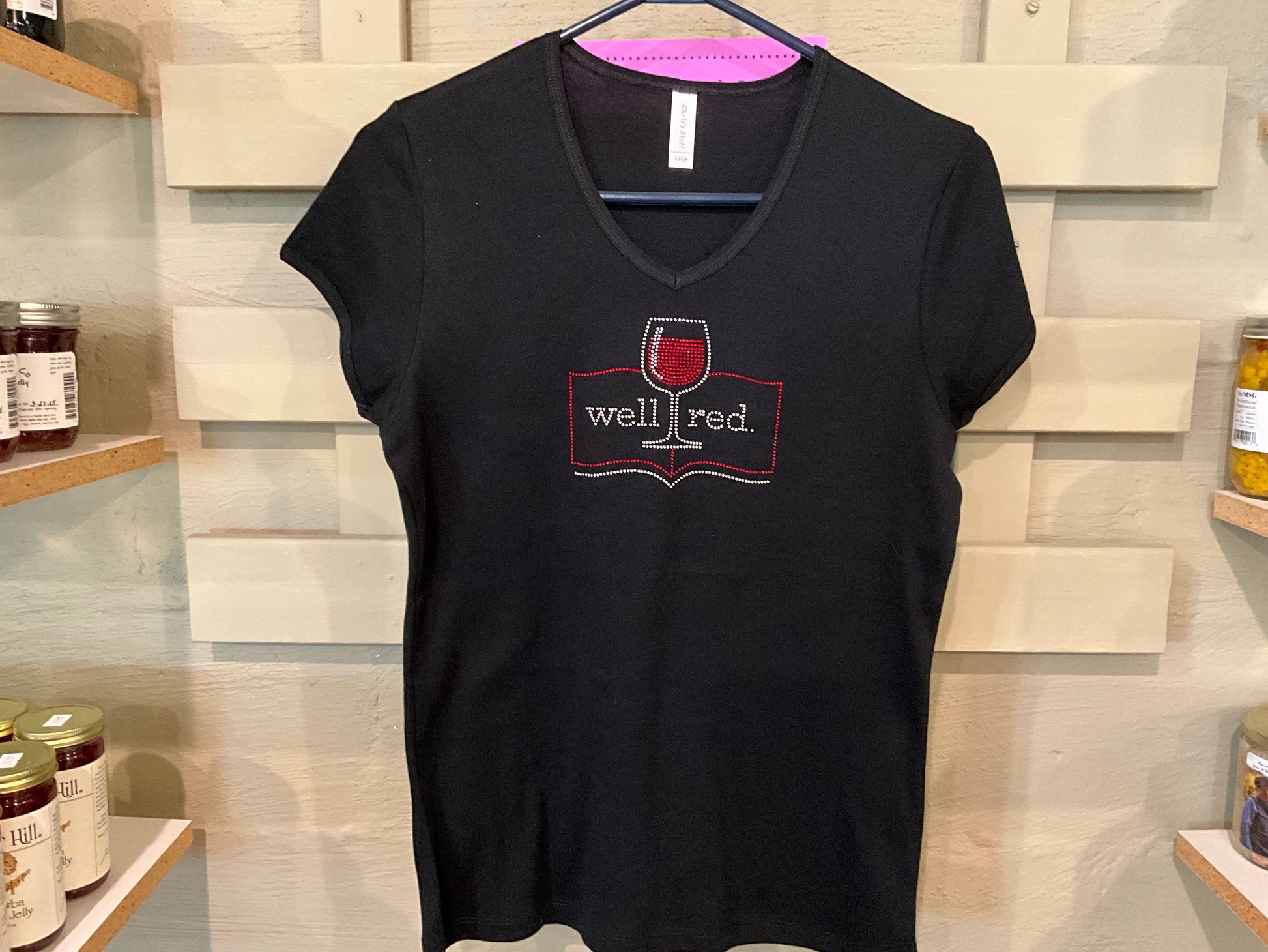 Well Red Rhinestone Women’s V-neck (Large)