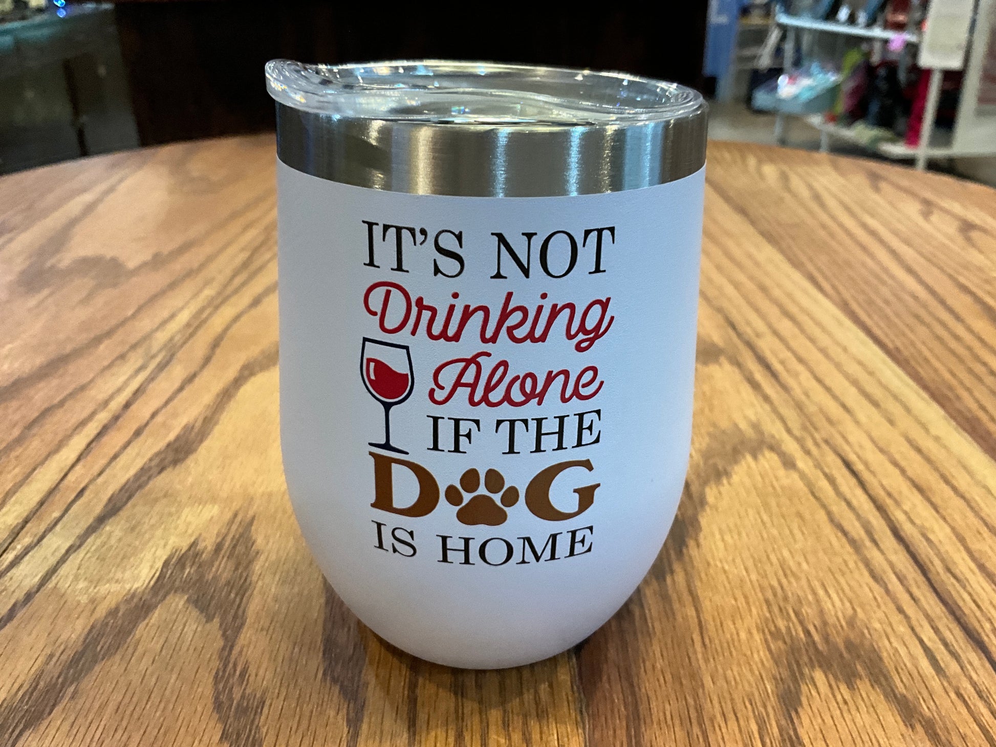 White Insulated Wine Tumbler (It’s Not Drinking Alone If The Dog Is Home)