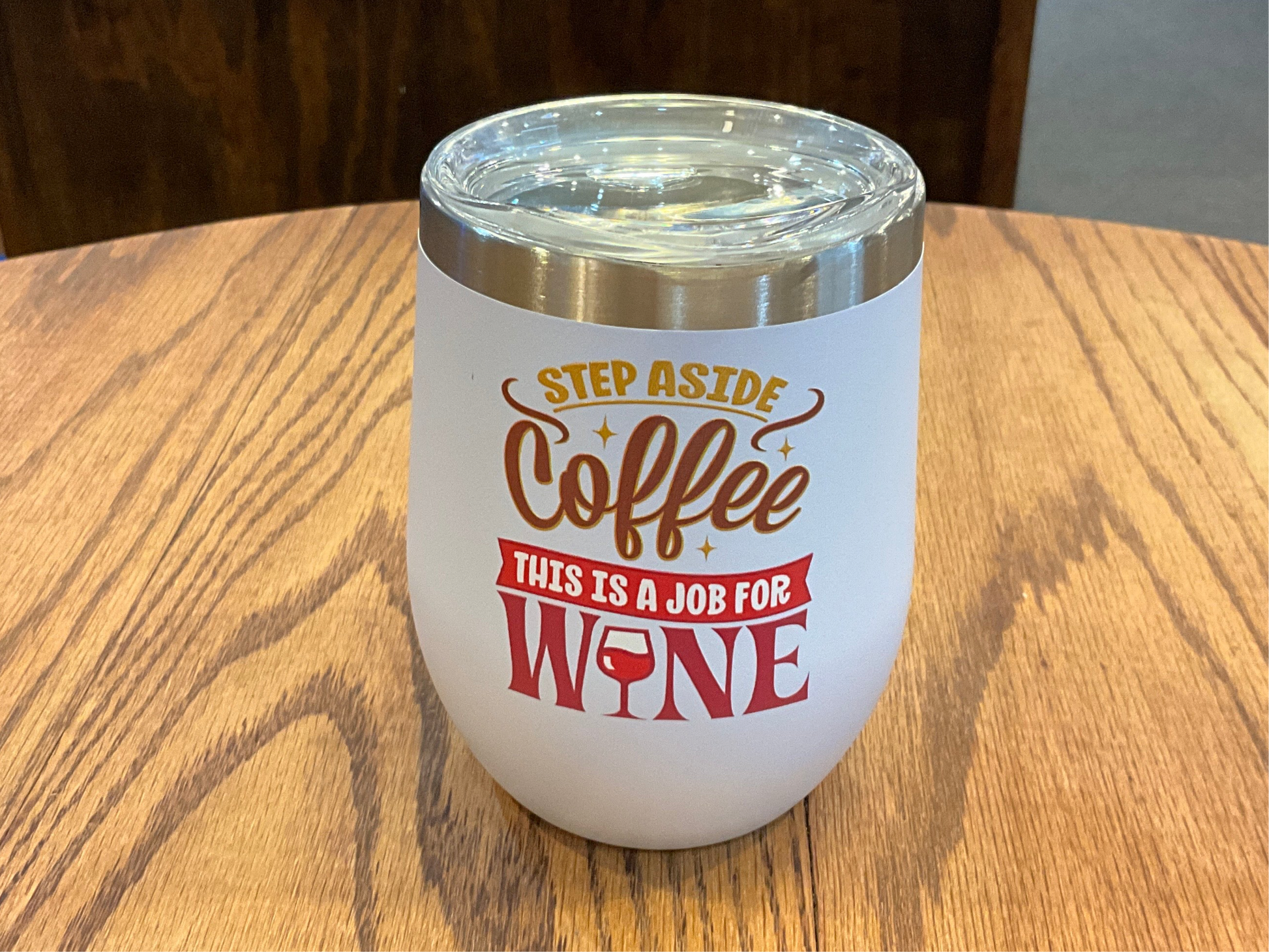 White Insulated Wine Tumbler (Step Aside Coffee This is a Job for Wine)