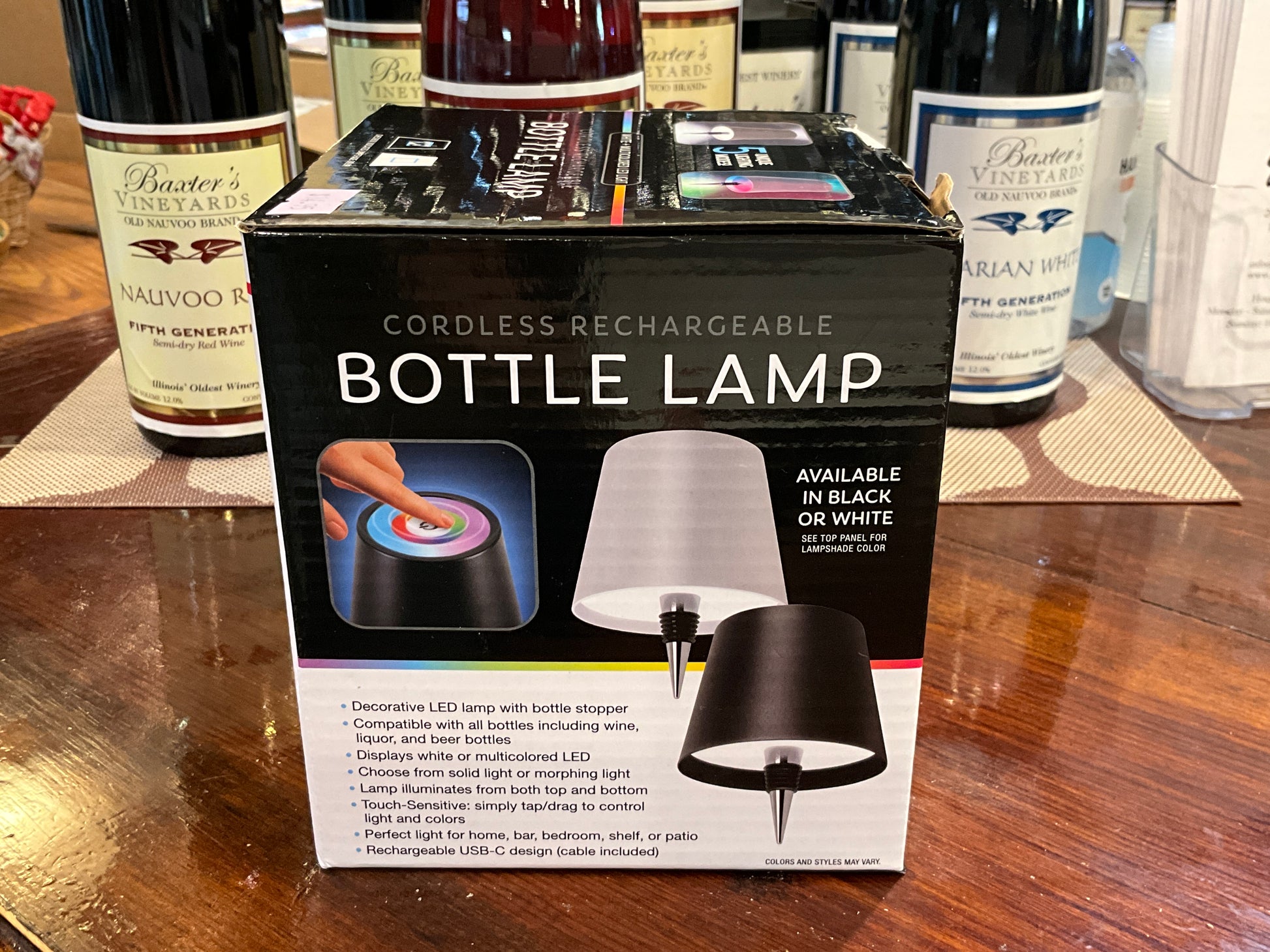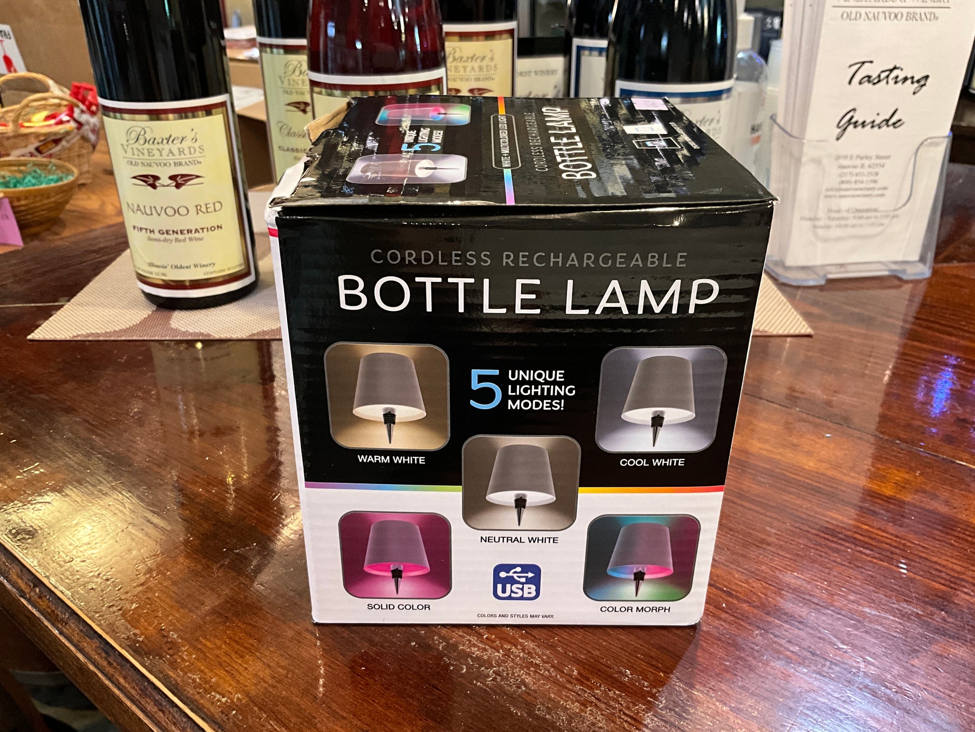 Cordless rechargeable Bottle Lamp with 5 Unique Lighting Modes: Warm White, Cool White, Neutral White, Solid Color, Color Morph. Fits any bottle! A great addition to your bar or as a night light in any room.