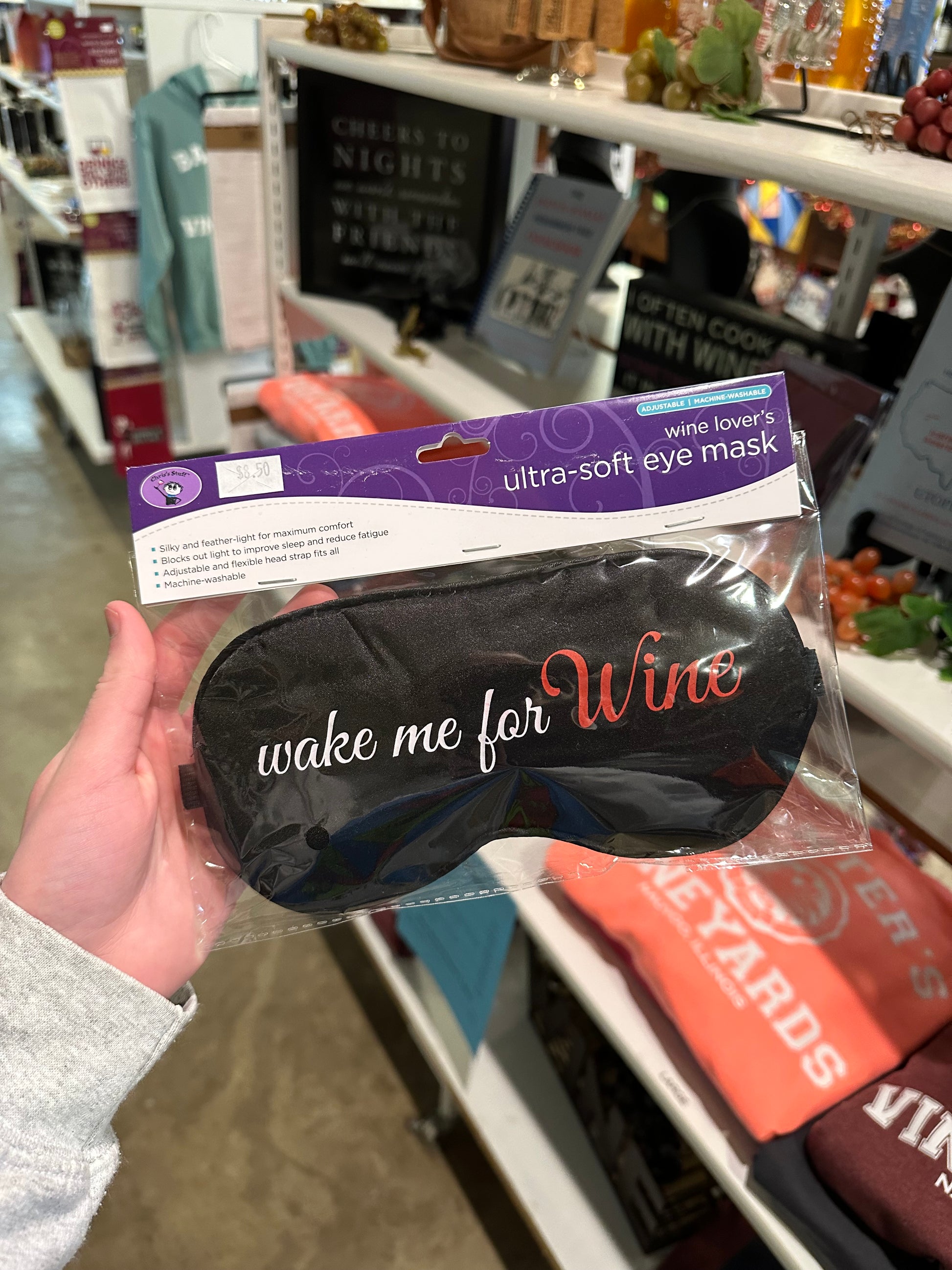 Wine lover’s ultra-soft eye mask. Adjustable and machine washable.
